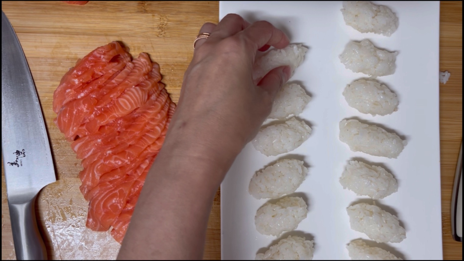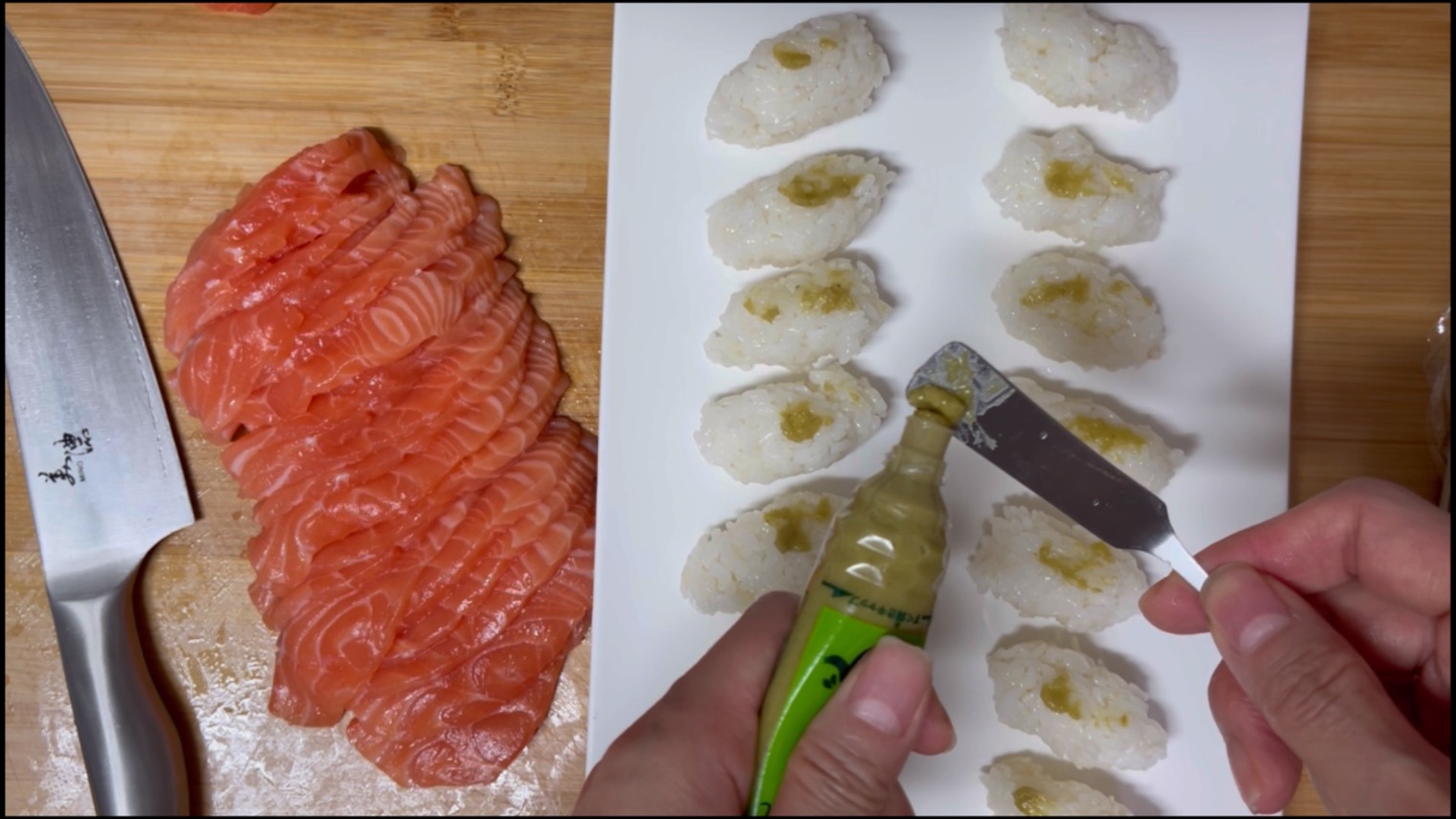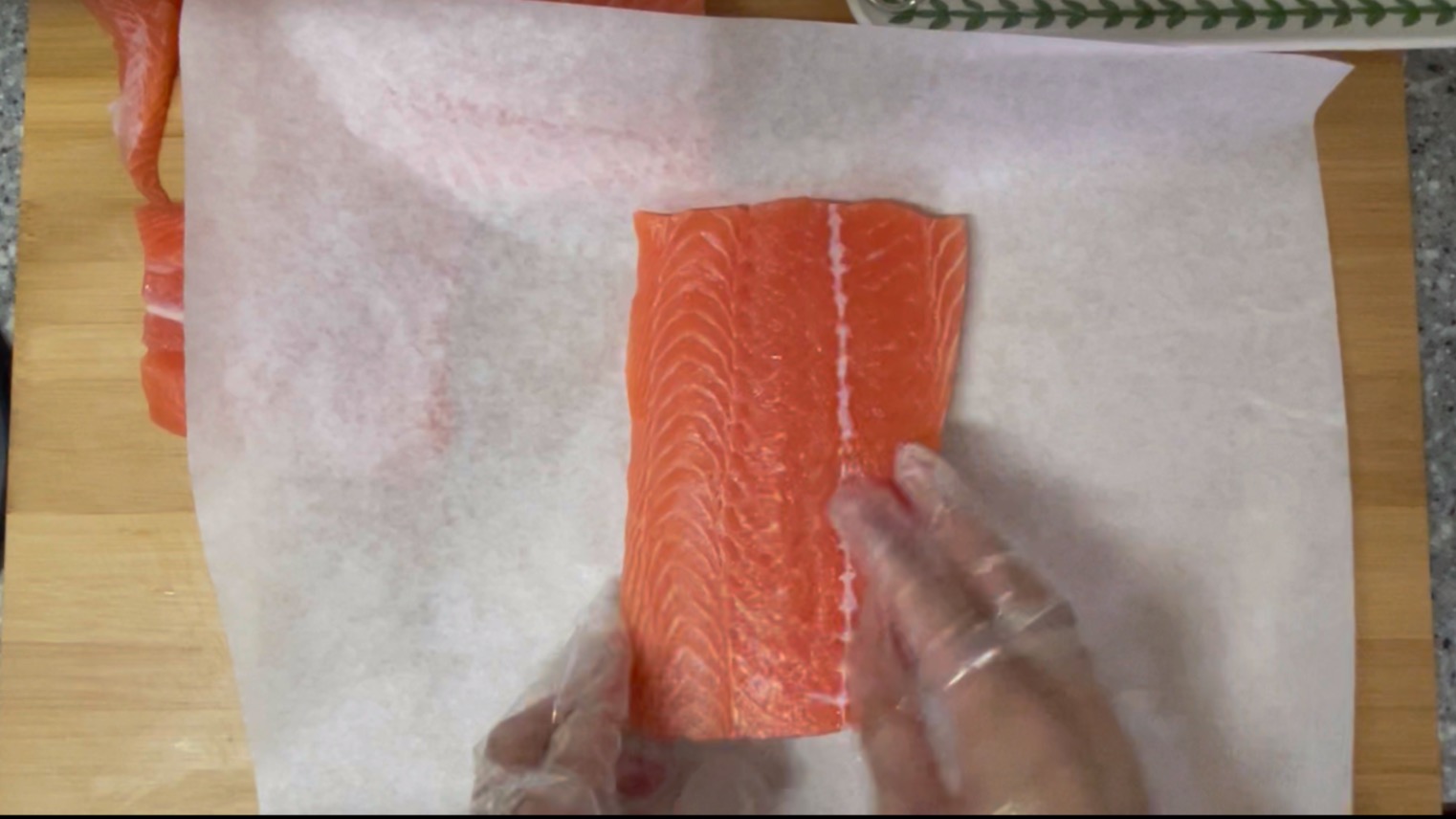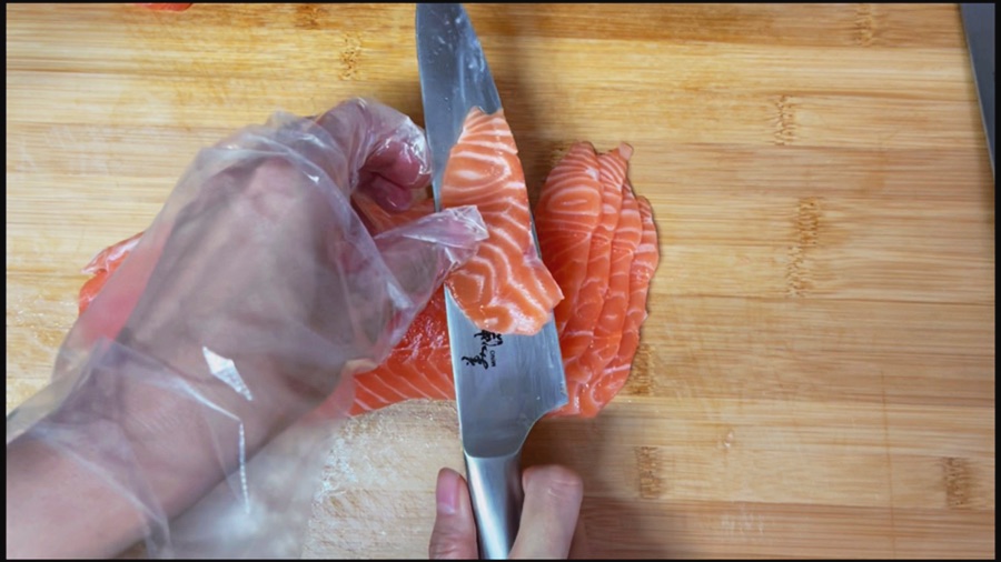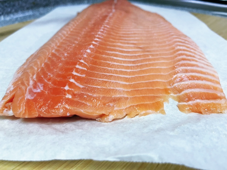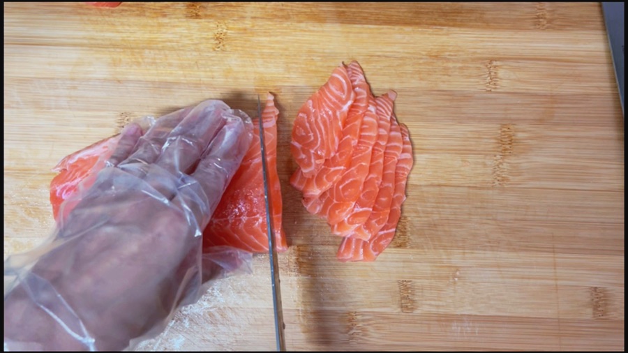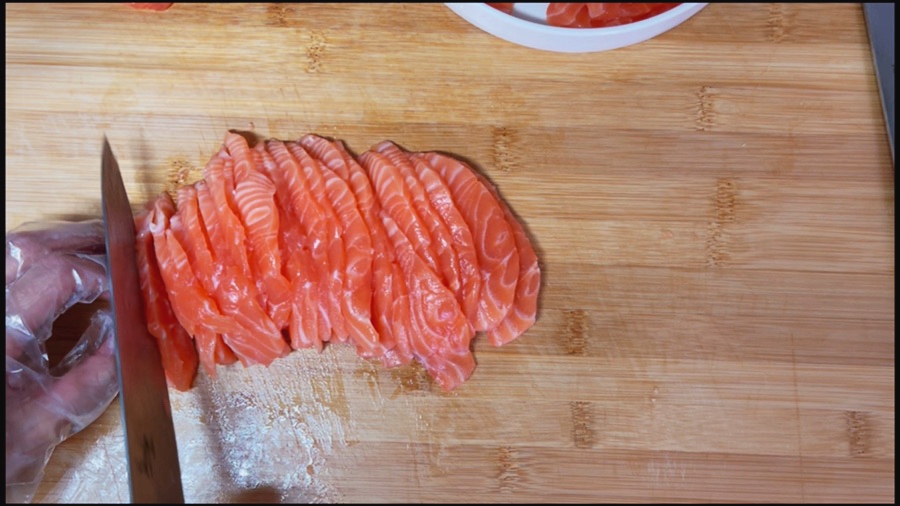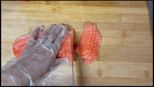 사실 연어 써는동안