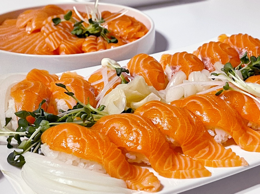 그 위에 연어로 덮어줍니다